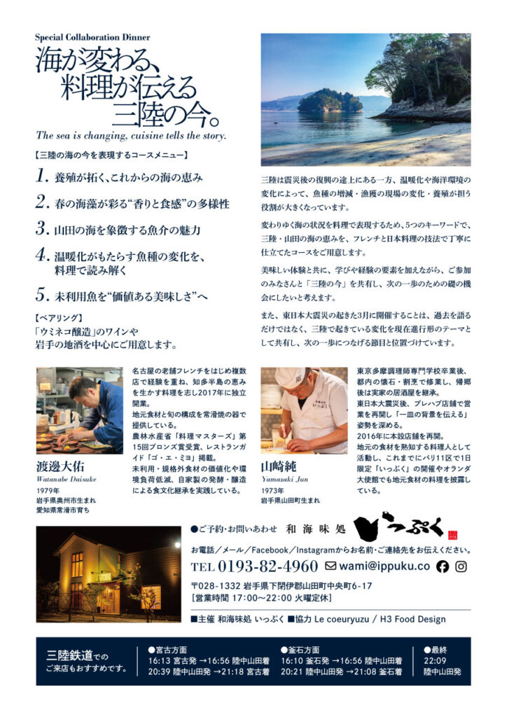 Pop UP Dinner「海が変わる、料理が伝える三陸の今。」開催のお知らせ