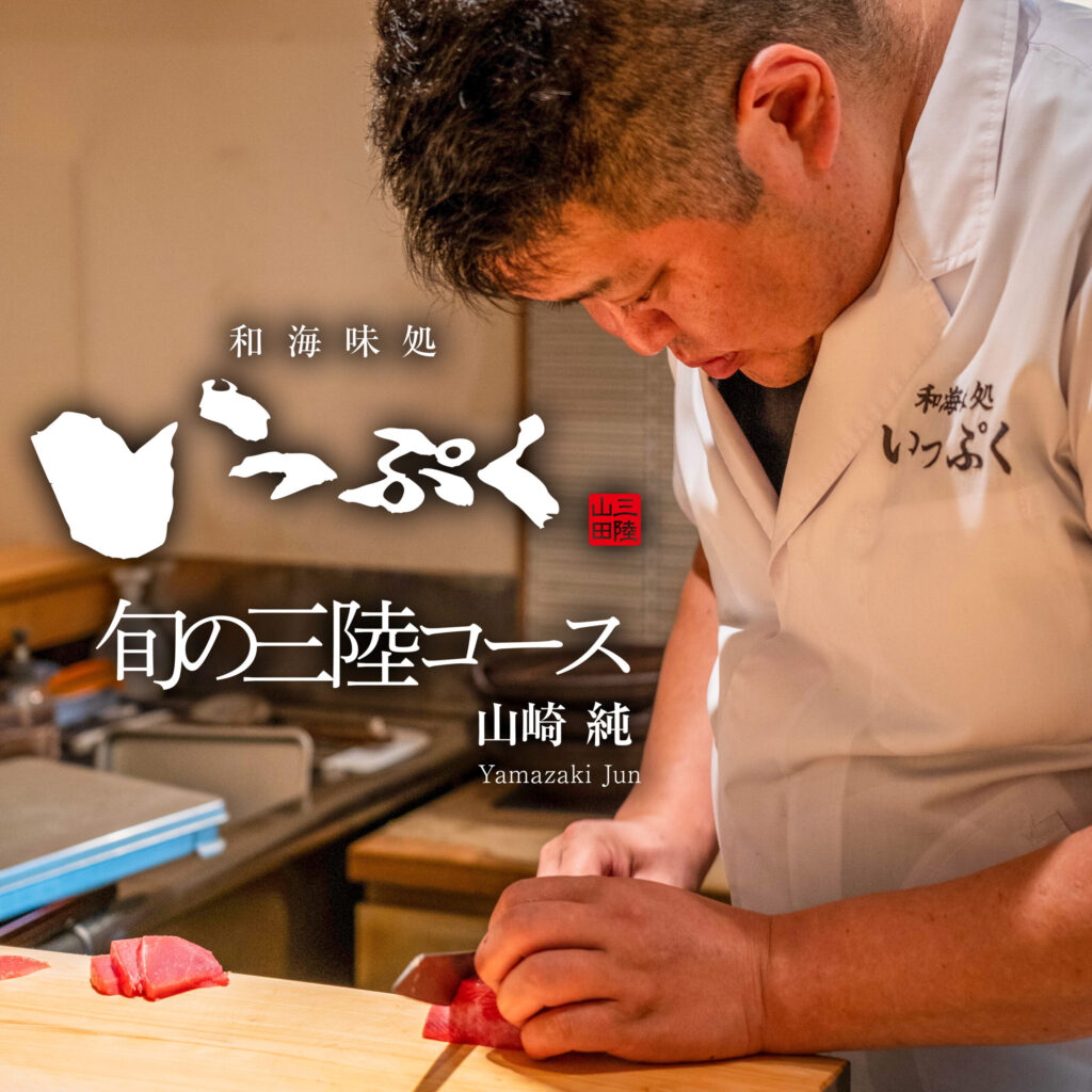 山田の魚市場から直接仕入れた魚介はもちろん、山田や三陸、広くは岩手や全国から旬のおいしさを集めて、山崎純が今おすすめしたいお料理でおもてなしいたします。